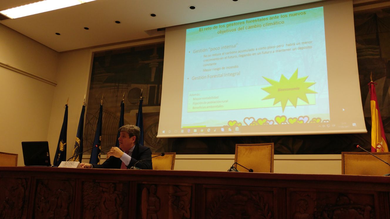 José Manuel Jaquotot Sáenz de Miera (MAPAMA), describiendo los retos y oportunidades de la gestión forestal para el cambio climático