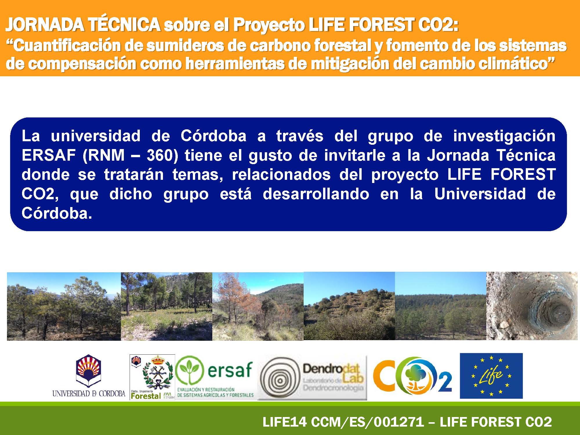El próximo 20 de febrero, a las 17:00 h, miembros del grupo de investigación ERSAF (RNM – 360) de la Universidad de Córdoba, organizan una Jornada Técnica sobre el proyecto LIFE FOREST CO2. Esta jornada, que tendrá lugar en Aracena, Huelva, está enfocada a estudiantes del Grado de Ingeniería Forestal o equivalente, profesionales del sector forestal, gestores medioambientales, y propietarios del medio natural.
